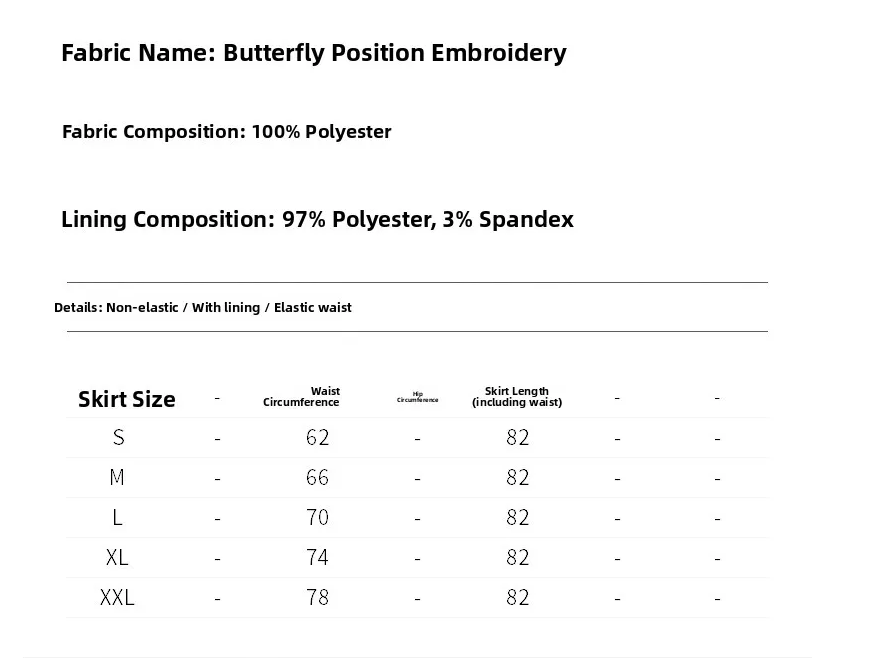 Featuring a delicate butterfly pattern, this half-length skirt adds a touch of elegance and femininity to any outfit.